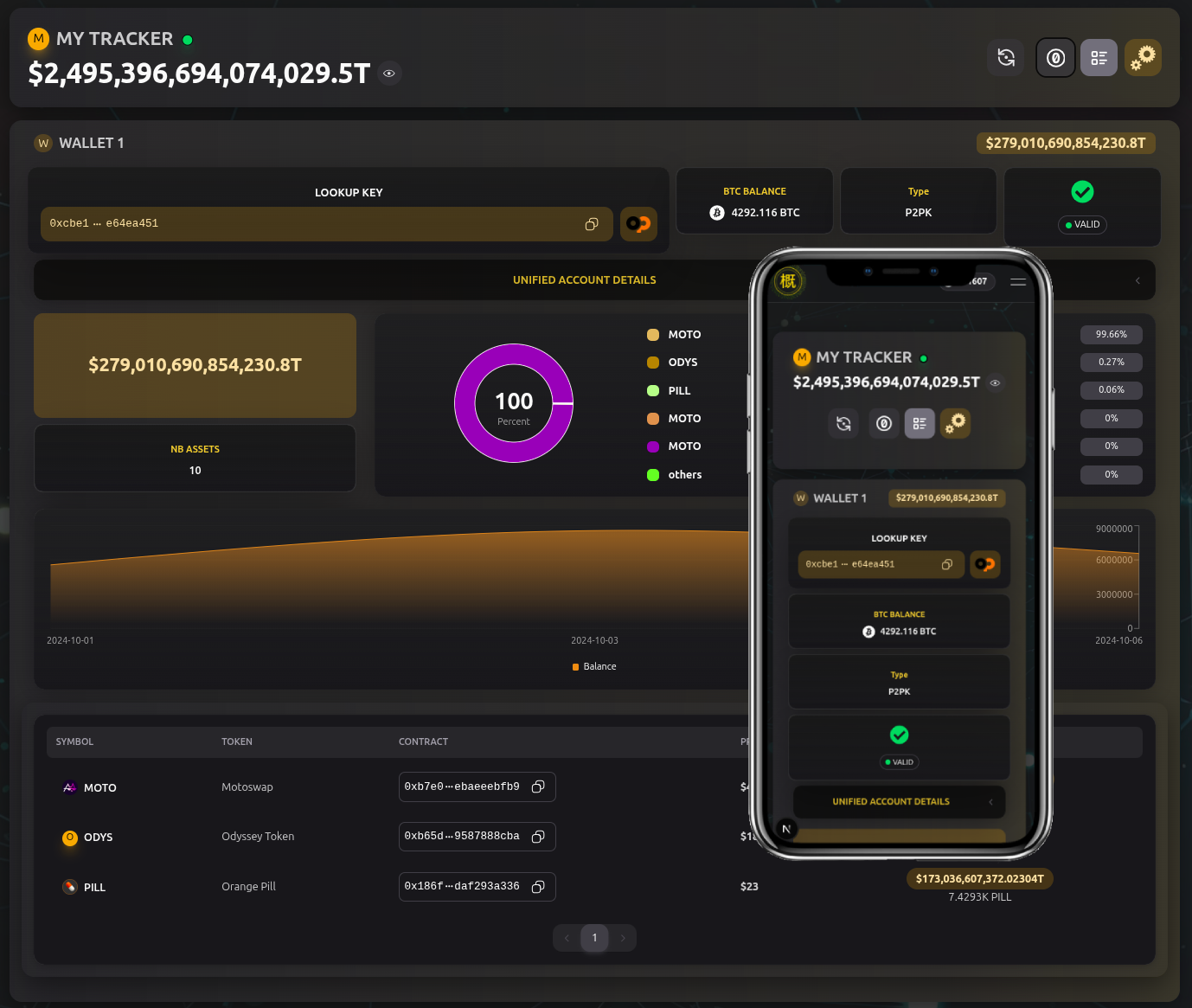 Explore your BTC assets performances and activities across the blockchain, assess asset allocations among wallets, and more, for a holistic view of your OPNET portfolio.